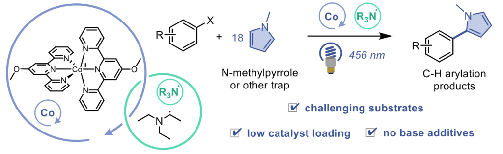 A. Erhard, B. Falge, F. Arp, J. Lucia Tamudo, T. Rittner, E. Tapavicza, P. Nürnberger, R. Wolf, “Photochemical arylation reactions mediated by a terpyridine cobalt complex”, Eur. J. Org. Chem. 2025, 28, e202500398 (Appears in ‘Hot Topic: Photocatalysis‘). DOI: 10.1002/ejoc.202500398
